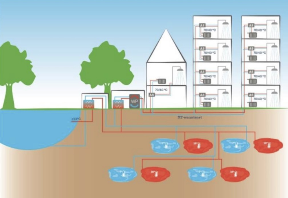 - Een warmtenet met aquathermie is technisch mogelijk